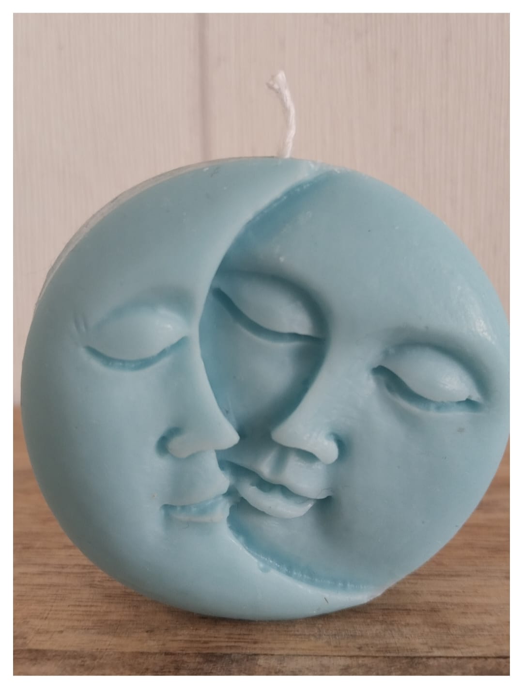 Una pieza cargada de simbolismo que representa la unión del día y la noche, donde el sol y la luna se entrelazan en un abrazo eterno. Su color azul suave la convierte en el amuleto perfecto para tus momentos de meditación o para decorar espacios llenos de magia.